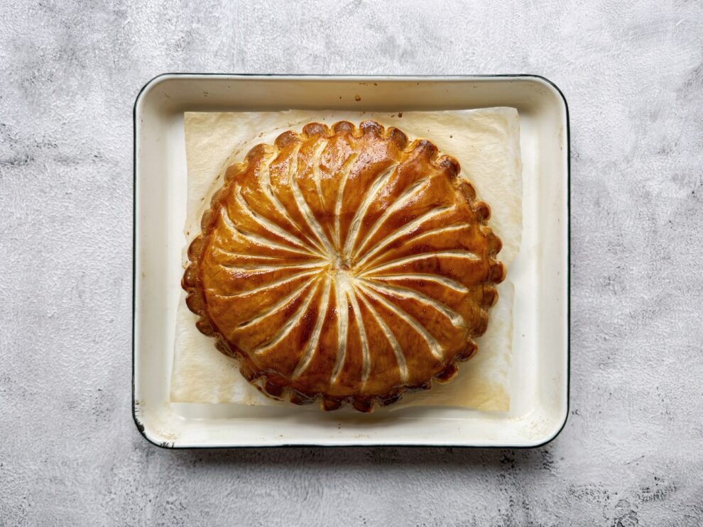 De frangipane-vulling met amandel is traditioneel, maar je kunt het ook voor een deel vervangen door pistachenotenmeel of een lepel pistachepasta. Daarnaast is het ook heerlijk om een paar verse frambozen in de frangipane te drukken voordat je het afdekt met de bovenste laag bladerdeeg. Om de amandelsmaak te benaderukken zijn er veel recepten die een theelepel amandelextract aan de vulling toevoegen. Een scheutje kruidige rum doet het ook goed. Of geef de taart een Hollands tintje door dunne plakjes appel en een snufje kaneel op de frangipane te leggen voordat je de taart afdekt.