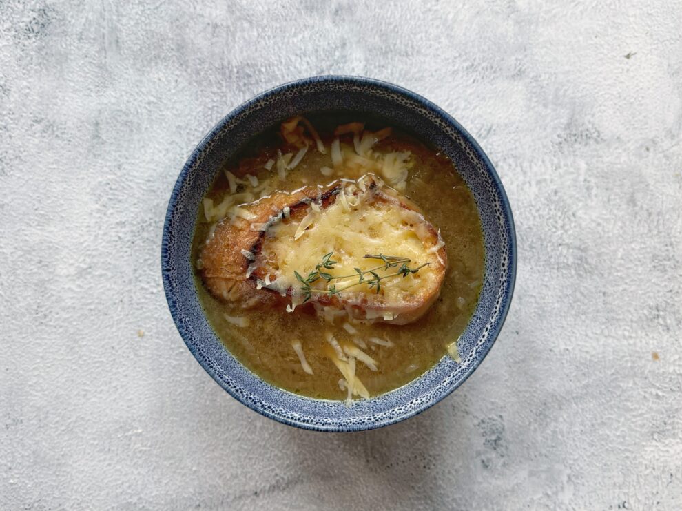 Franse uiensoep: een kom vol lekkers, met de rijke smaak van langzaam gekaramelliseerde uien en een heerlijk broodje!