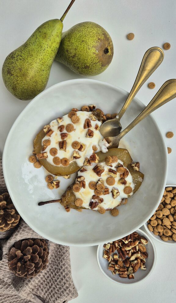 Warm, zoet en een beetje knapperig: deze gebakken peren met kaneelboter en yoghurt zijn dé perfecte traktatie voor het knusse seizoen. Supersimpel om te maken en heerlijk als ontbijt, tussendoortje of dessert. Een klein beetje extra liefde met pecannoten en ahornsiroop maakt het helemaal af!