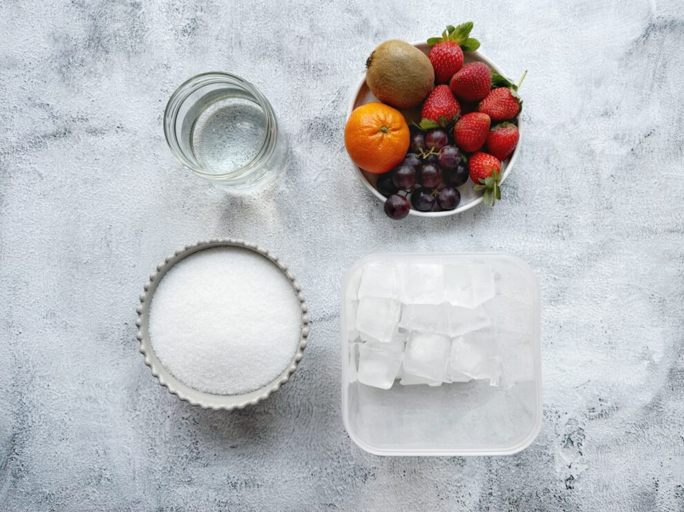 - Zet alle ingrediënten klaar. Leg een vel bakpapier klaar en zet een hoge beker of bak met ijswater (ijsblokjes met water) klaar.
