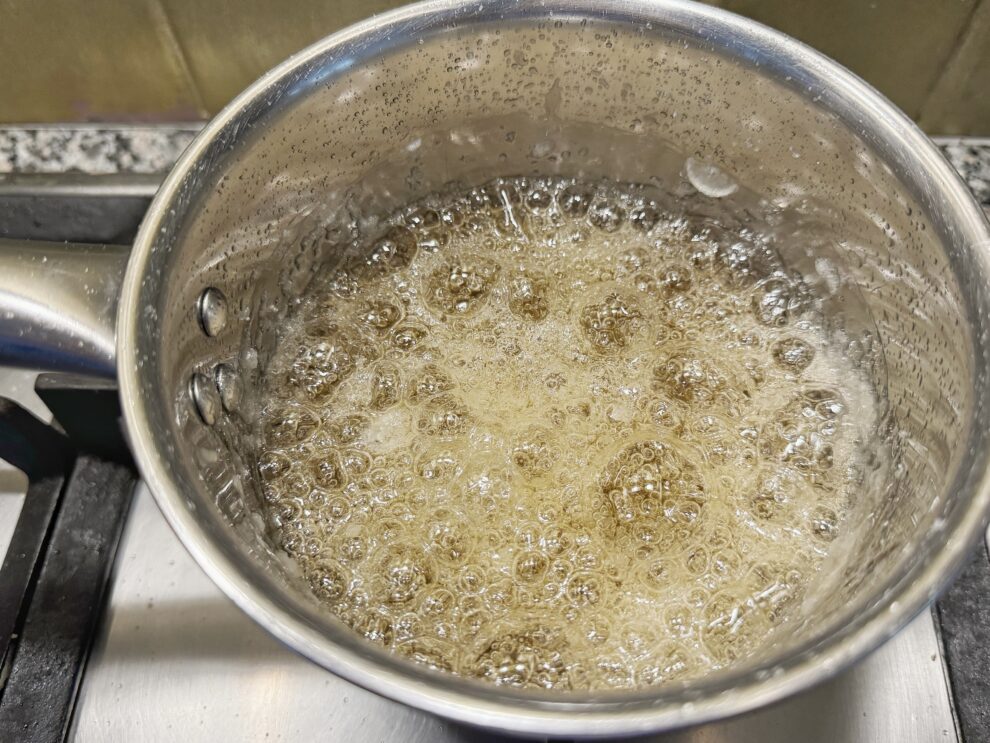 Tip: Van de overgebleven suikersiroop kun je lollies maken. Of bekleed een hittebestendig bakje met aluminiumfolie en giet de suikersiroop hier in als het nog heet is. Zo kun je het als het eenmaal is afgekoeld makkelijk weggooien. Maak van het schoonmaken van de pan vervolgens een makkelijk klusje door de pan te vullen met heet water en dit even te laten staan. Daarna maak je de pan veel makkelijker schoon.