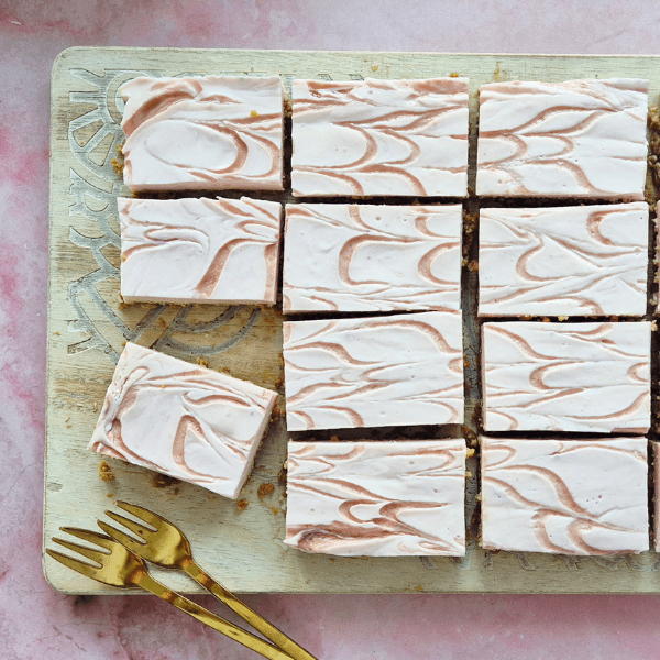 Frisse aardbeien kwarkbites met Lotus Biscoff bodem